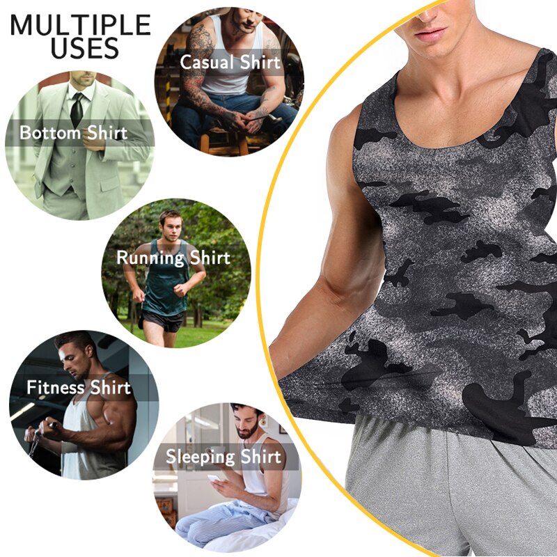 Mens Sweat Athletic Compression Underwear Slimming Body Shaper Tank Top Abs Abdomen Slim Vest Elastic Top Undershirt